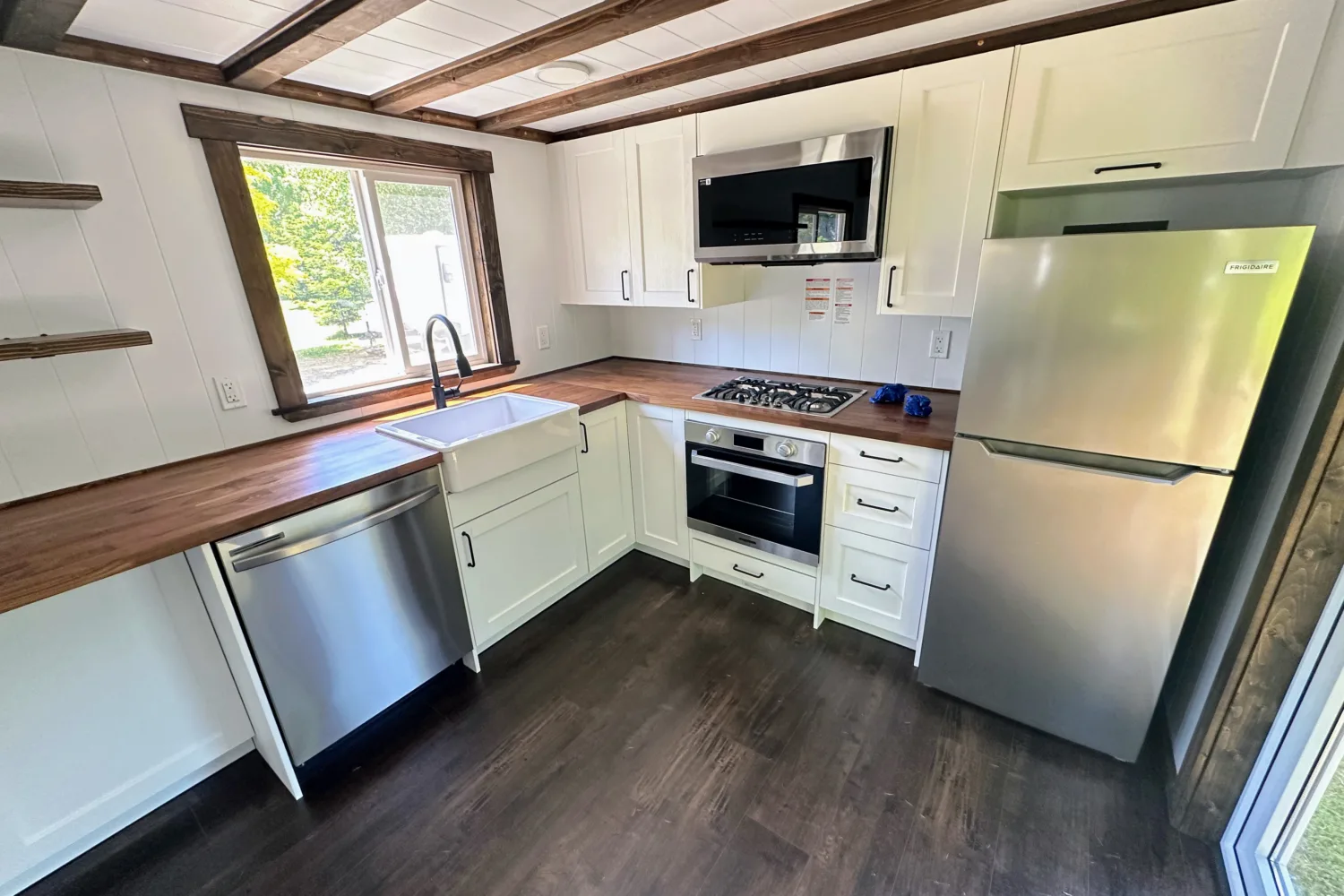 The Garibaldi model, also known as the Casper, is a 34-foot park model tiny house with a 6 sleeping capacity and 340 total square footage. Designed for those who want the comforts of home with the freedom to live wherever they please, this model strikes a beautiful balance between space, style, and smart design.