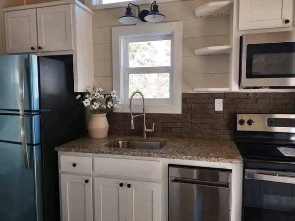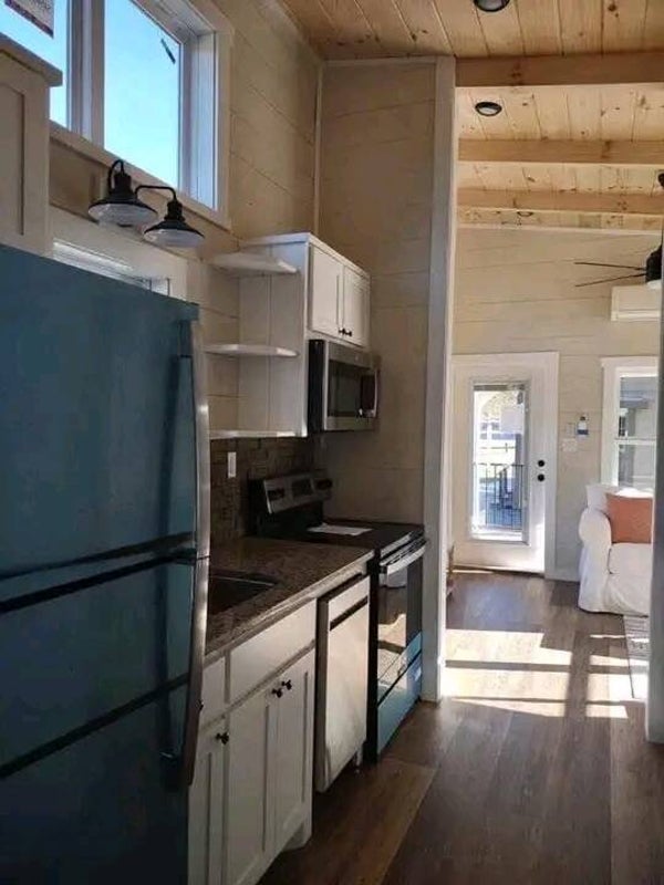 This Maddox model tiny home is a 396 square feet, 11′ x 34′, 1 bedroom, 1 bath RV park model